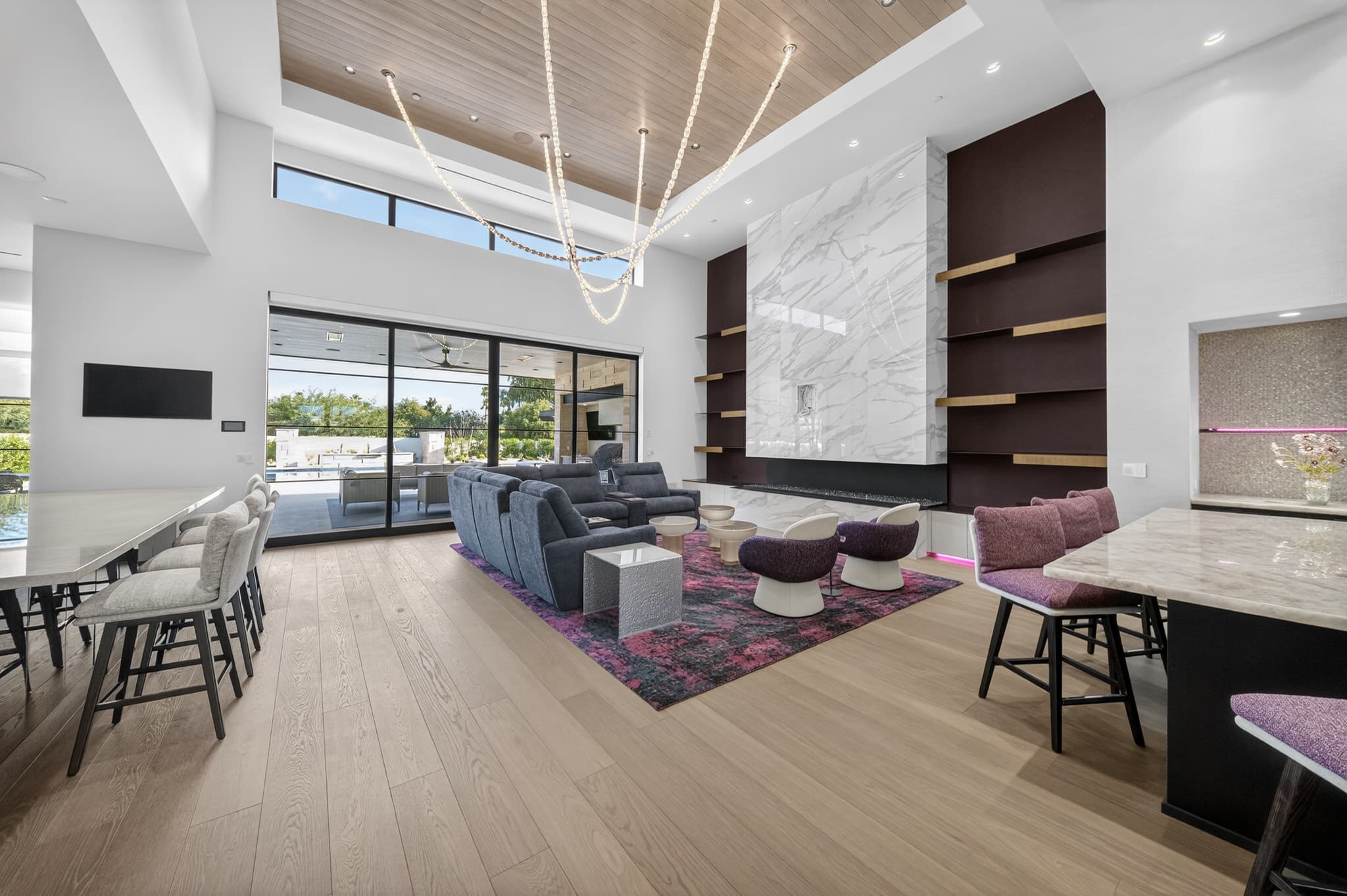 What makes the project stand out is the way the detailing carries through every zone. Sculptural ceilings, warm millwork, statement stone, and specialty lounge spaces all work together without losing the calm of the overall composition. The interior sequence was designed to feel immersive, but still highly livable.